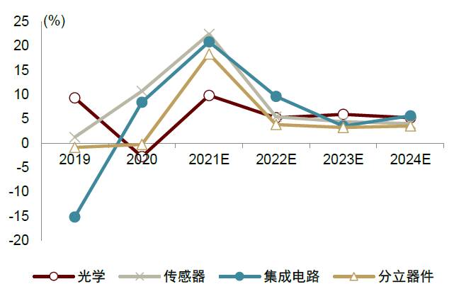 图表:全球半导体产值同比增速(按应用场景分)