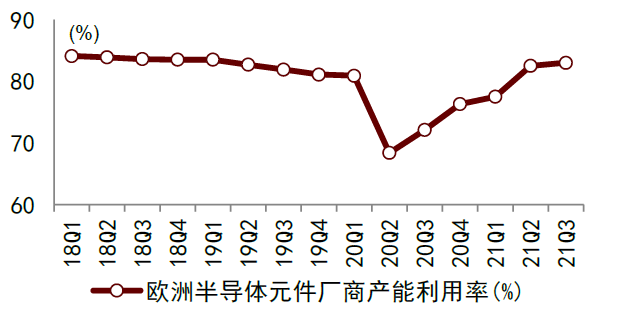 图表:欧洲主要半导体元件供应商产能利用率情况