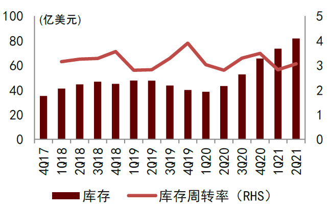 半导体元器件制造商产能利用率基本恢复至疫情前水平。2Q21以来,虽然疫情反复仍导致产能利用率有所波动,但半导体元件制造商整体复工复产稳健,产能利用率整体处于上升状态。