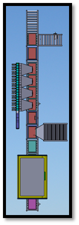 包装线直接连接冷冻设备,冷冻食品包装工序包括自动套袋、定量称重、 打包等;该包装线可广泛应用于冷冻食品包装。